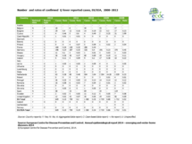 Number and rates of confirmed Q fever reported cases, EU/EEA, 2008–2012