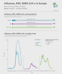 Influenza, SARS-CoV-2 and RSV activity in EU/EEA Member States continue to decrease or remain stable at low levels. Cases, including severe infections, can still occur and it therefore remains essential to continue testing patients presenting with severe acute respiratory symptoms in order to guide treatment and inform epidemiological assessments.