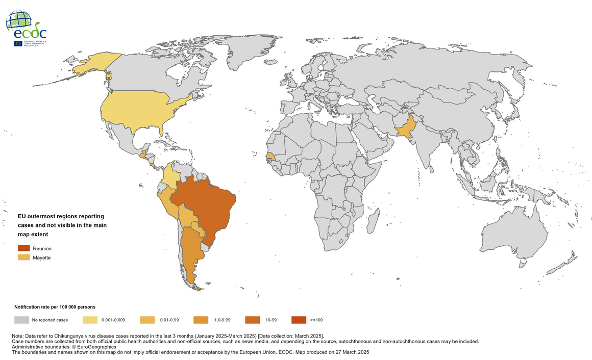 For CHIKVD cases reported in mainland EU/EEA, please refer to the dedicated ECDC website. CHIKVD cases have been reported from the French outermost regions of Réunion and Mayotte.