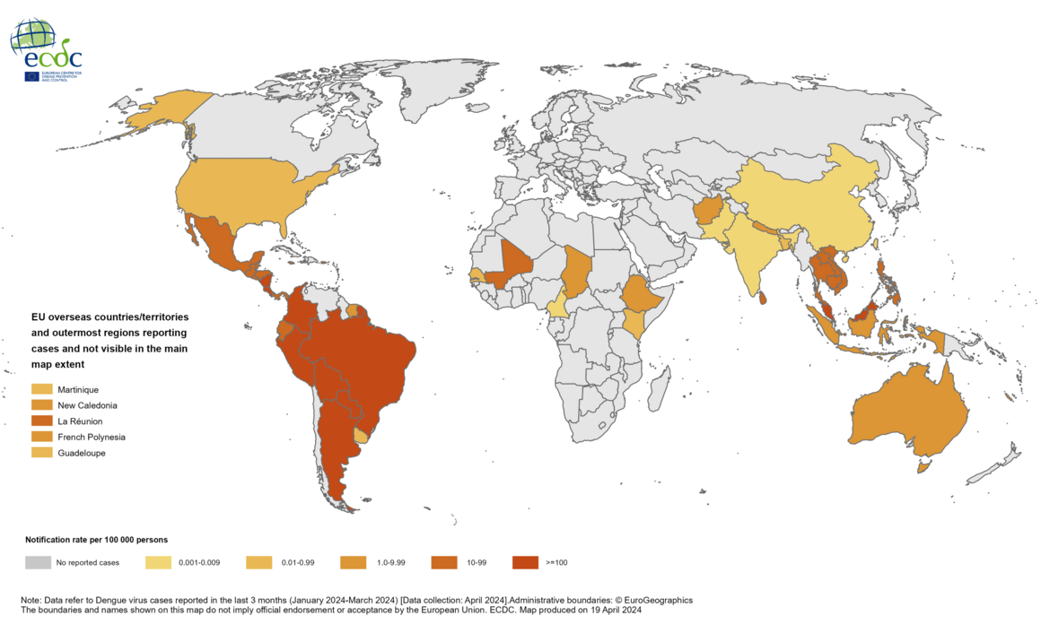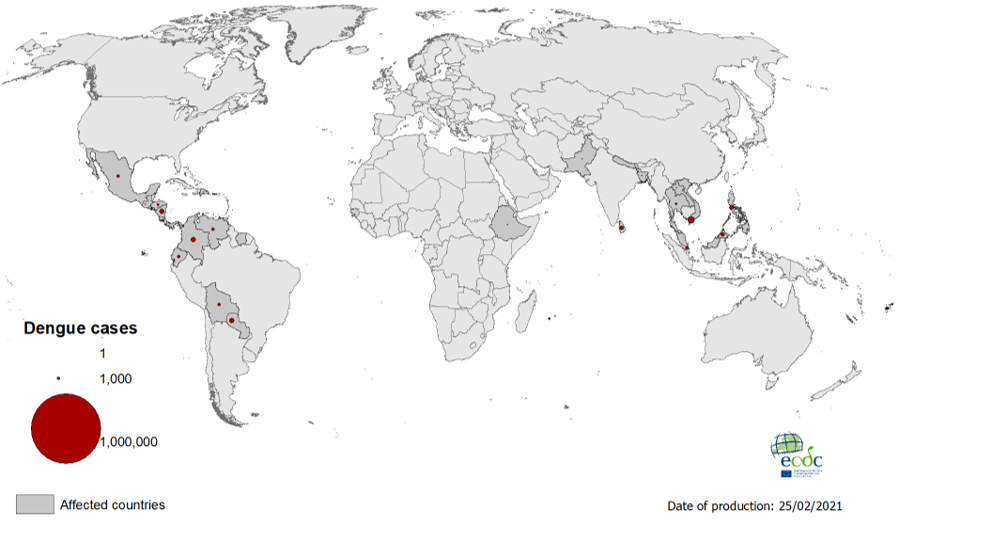 A summary of recent epidemiological trends of dengue outside EU/EEA of the first seven months of 2025 is presented below. The summary is based on available information from official sources and reports from different countries/territories.