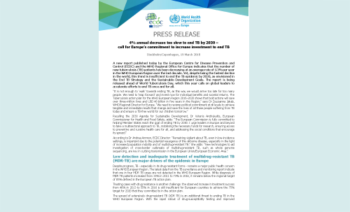 Press release: 4% annual decrease too slow to end TB by 2030 – call for Europe’s commitment to increase investment to end TB
