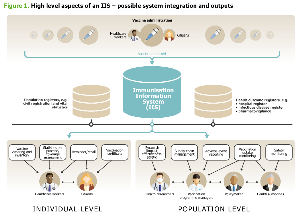By generating quality and timely evidence on vaccination, an IIS can support authorities in guiding public health actions and constitute an integral part of well-functioning vaccine programmes. When interoperability of the IIS with other health information systems (e.g. hospital databases and safety registers) is achieved, IIS have great potential to be the most robust and systematic approach for providing data to study the safety and effectiveness of specific vaccines.
