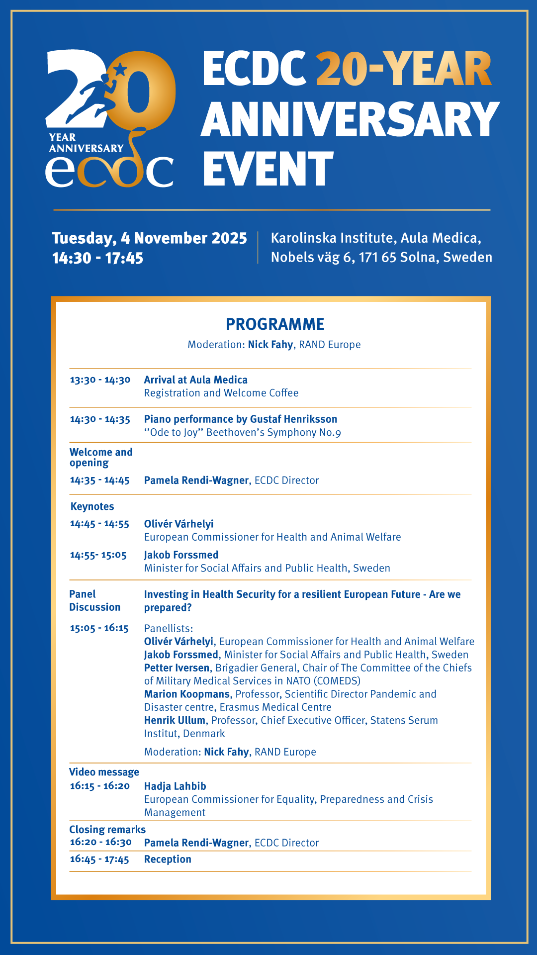 In 2025, ECDC celebrates 20 years of strengthening Europe’s defences against infectious diseases.