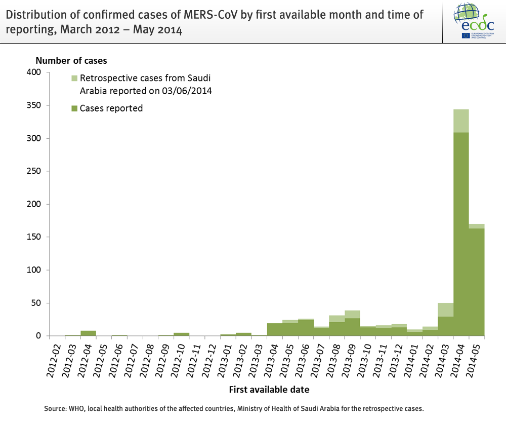 Since April 2012 and as of 4 June 2014, 815 cases of MERS-CoV infection have been reported by local health authorities worldwide, including 313 deaths.