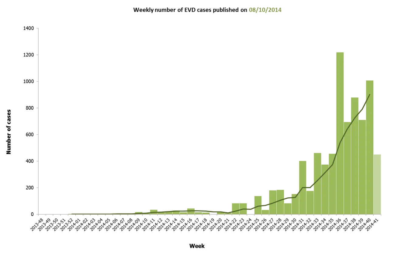 Since December 2013 and as of 5 October 2014, 8 032 cases of EVD, including 3 865 deaths, have been reported by WHO (Figure 1) [10].