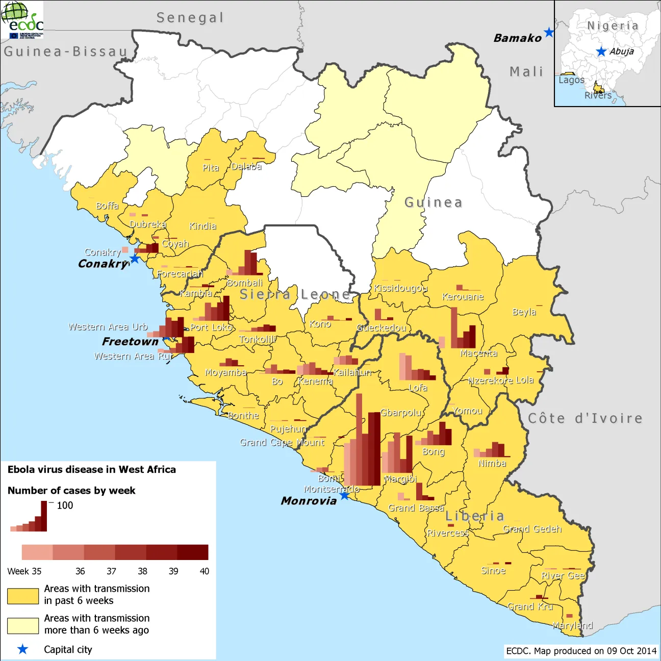 Epidemiological update: outbreak of Ebola virus disease in West Africa, 9 October 2014