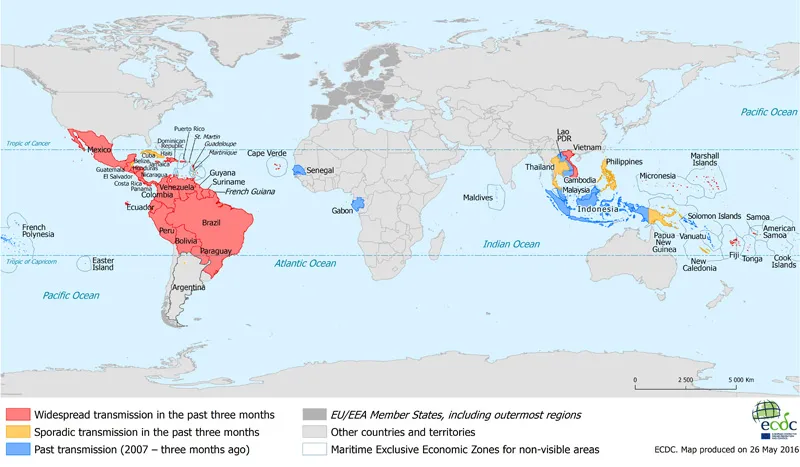 As of 26 May 2016, ECDC has recorded 638 imported cases in 18 EU/EEA countries. Thirty-six of the imported cases are pregnant women. In addition, one confirmed case was published following the diagnosis in a Slovenian hospital. The number of imported cases reported is not based on a systematic reporting surveillance systems hence cannot be considered exhaustive.