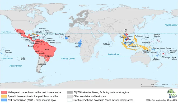 All ECDC maps with information on countries or territories with reported confirmed autochthonous cases of Zika virus infection can be found here.