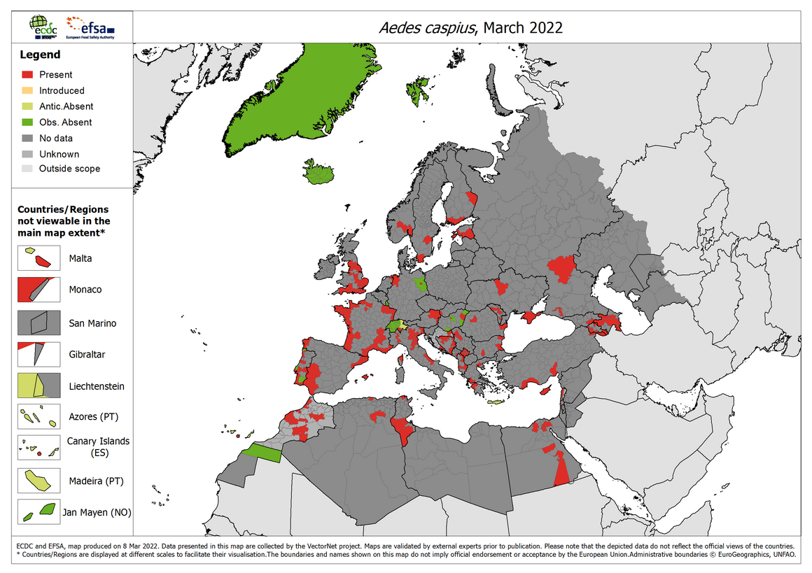 Suggested citation: European Centre for Disease Prevention and Control and European Food Safety Authority. Mosquito maps [internet]. Stockholm: ECDC; 2022. Available from: https://ecdc.europa.eu/en/disease-vectors/surveillance-and-disease-data/mosquito-maps
