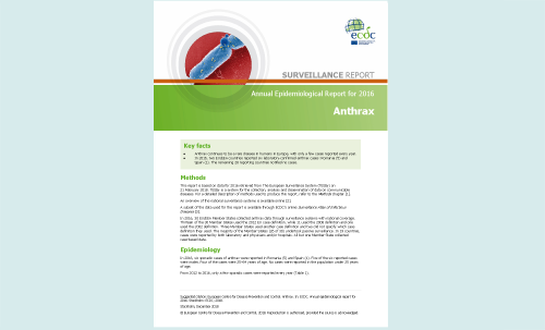 Anthrax continues to be a rare disease in humans in Europe, with only a few cases reported every year. In 2016, two EU/EEA countries reported six laboratory-confirmed anthrax cases: Romania (5) and Spain (1). The remaining 28 reporting countries notified no cases.