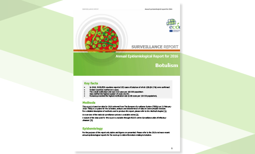 In 2017, 30 EU/EEA countries reported 107 cases of botulism, 86 of which (80.4 %) were confirmed. Fourteen countries notified zero cases. The overall notification rate was 0.02 cases per 100 000 population. Italy notified the highest number of cases (N=21). Lithuania and Romania presented the highest notification rate (0.07 cases per 100 000 population).