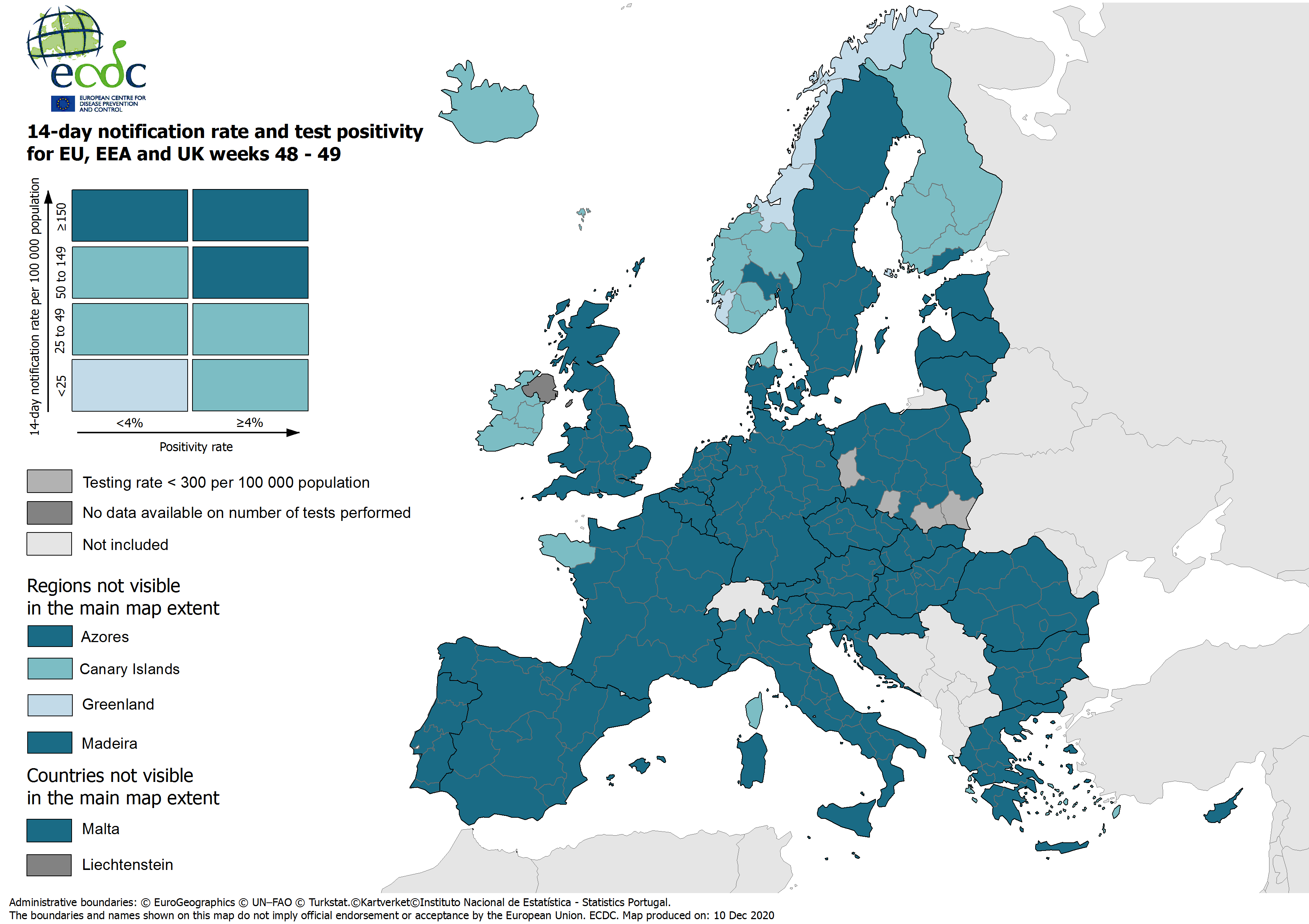 Combined indicator: 14-day notification rate, testing rate and test positivity, updated 10 December 2020, week 49 (colour-blind friendly)