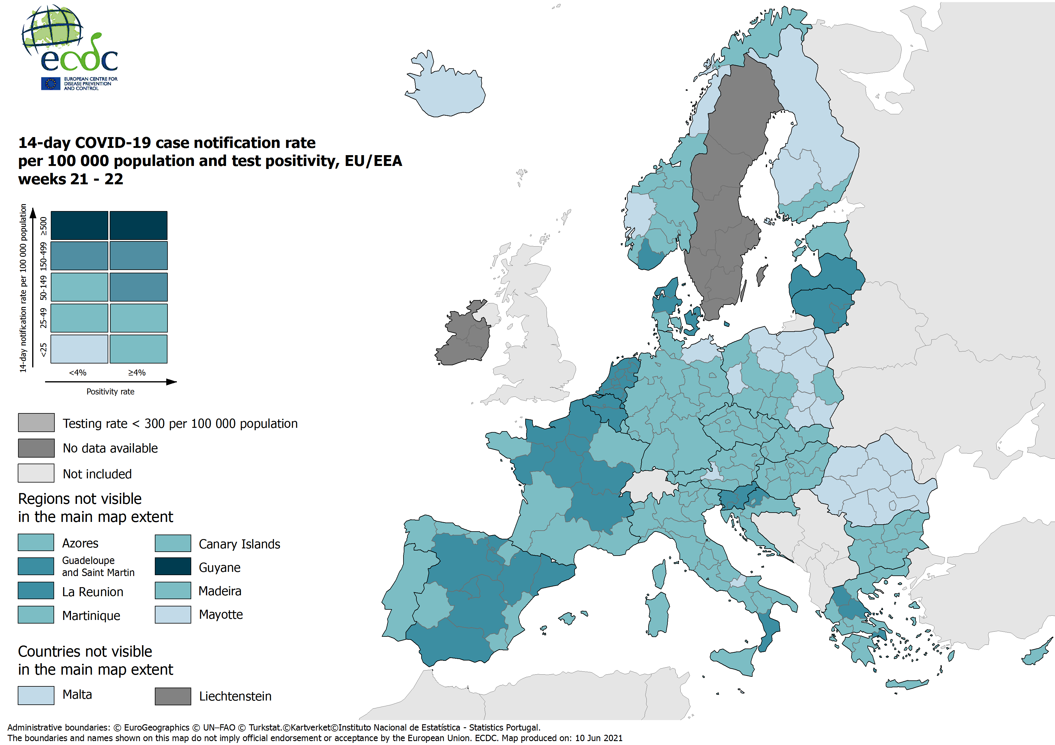 Combined indicator: 14-day notification rate, testing rate and test positivity, updated 10 June 2021, week 22 (colour-blind friendly)