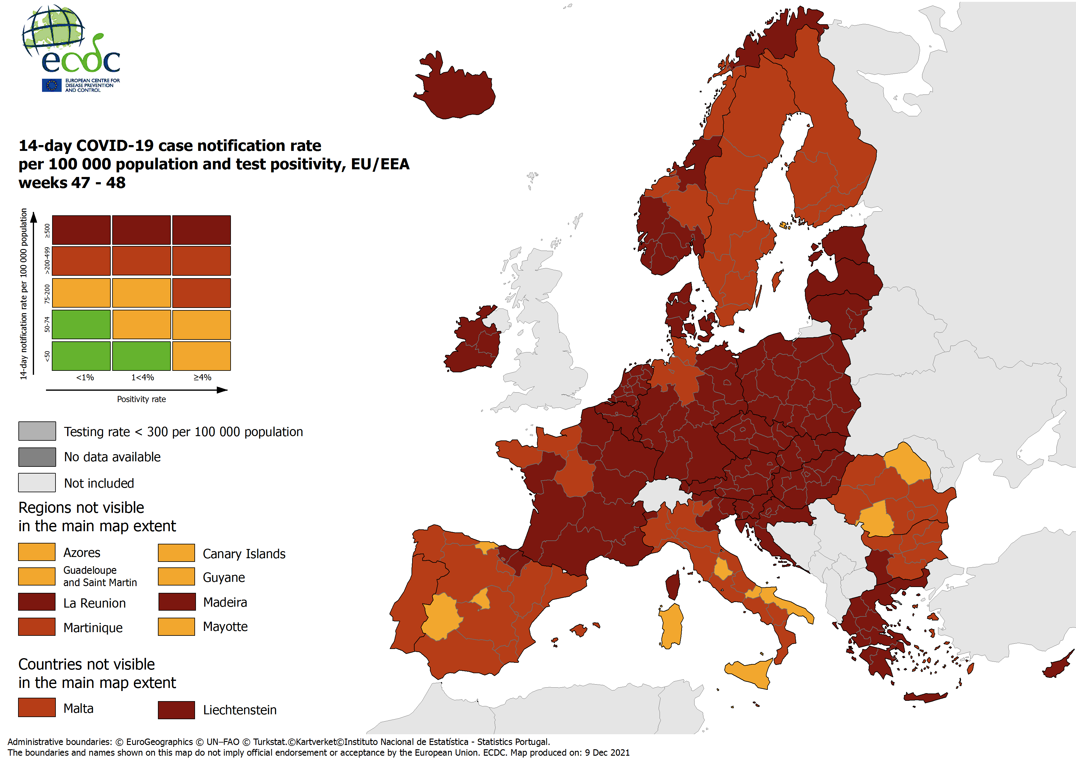 Combined indicator: 14-day notification rate, testing rate and test positivity, updated 9 December 2021, weeks 47-48