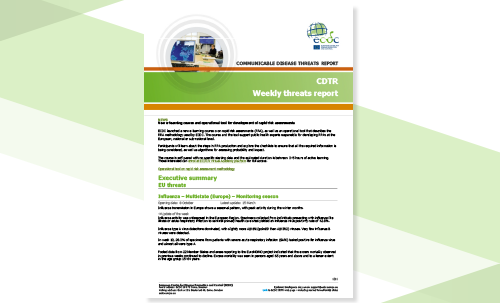 The ECDC Communicable Disease Threats Report (CDTR) is a weekly bulletin for epidemiologists and health professionals on active public health threats. This issue covers the period 28 November-4 December 2021 and includes updates on COVID-19, Ebola, and Influenza.