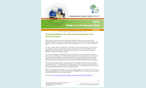 The ECDC Communicable Disease Threats Report (CDTR) is a weekly bulletin for epidemiologists and health professionals on active public health threats. This issue covers the period 4-10 February 2018 and includes updates on poliomyelitis, hepatitis A, seasonal influenza, rubella, measles, meningitis, mass gathering monitoring (Olympics) and yellow fever.