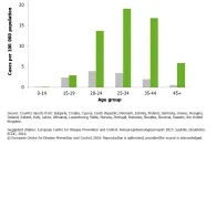 Rate of reported confirmed syphilis cases per 100 000 population, by age and gender, EU/EEA, 2014