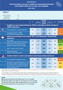 Infographic showing the key indicators of the point prevalence survey of healthcare-associated infections and antimicrobial use in European acute care hospitals – 2022-2023.