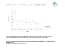 Distribution of confirmed brucellosis reported cases by month, EU/EEA, 2008–2012