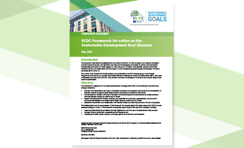 This framework describes the building blocks and actions that ECDC will use to support and empower European Union/European Economic Area (EU/EEA) countries and the European Commission to achieve the Sustainable Development Goal (SDG) on health target 3.3, with a focus on HIV/AIDS, viral hepatitis, sexually transmitted infections (STIs), and tuberculosis (TB) (SDG goal 3.3 and corresponding global targets and European indicators are presented in Annex 1).