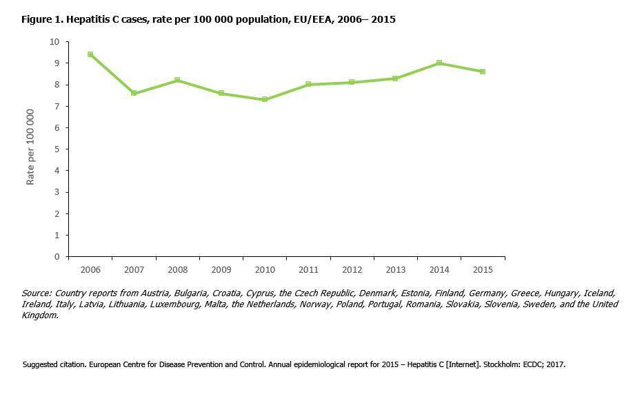 Figure 1. Hepatitis C cases, rate per 100 000 population, EU/EEA, 2006– 2015
