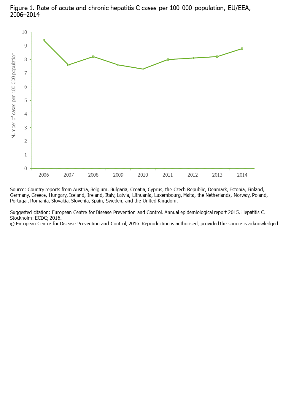 Figure 1. Rate of reported hepatitis C cases per 100 000 population, EU/EEA, 2006–2014