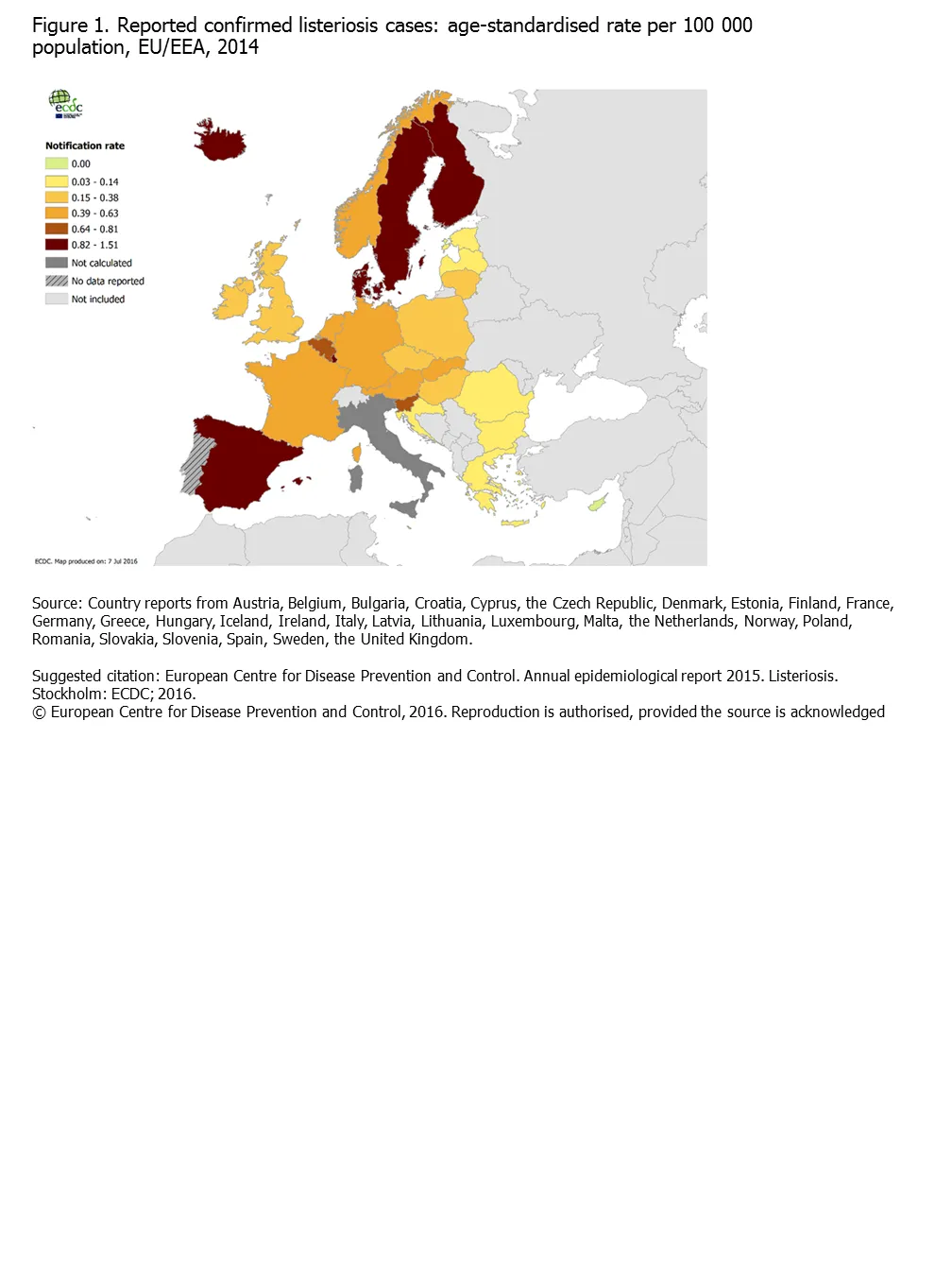 Figure 1. Reported confirmed listeriosis cases: age-standardised rate per 100 000 population, EU/EEA, 2014