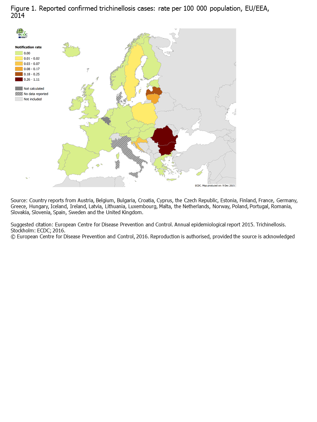Figure 1. Reported confirmed trichinellosis cases: rate per 100 000 population, EU/EEA, 2014