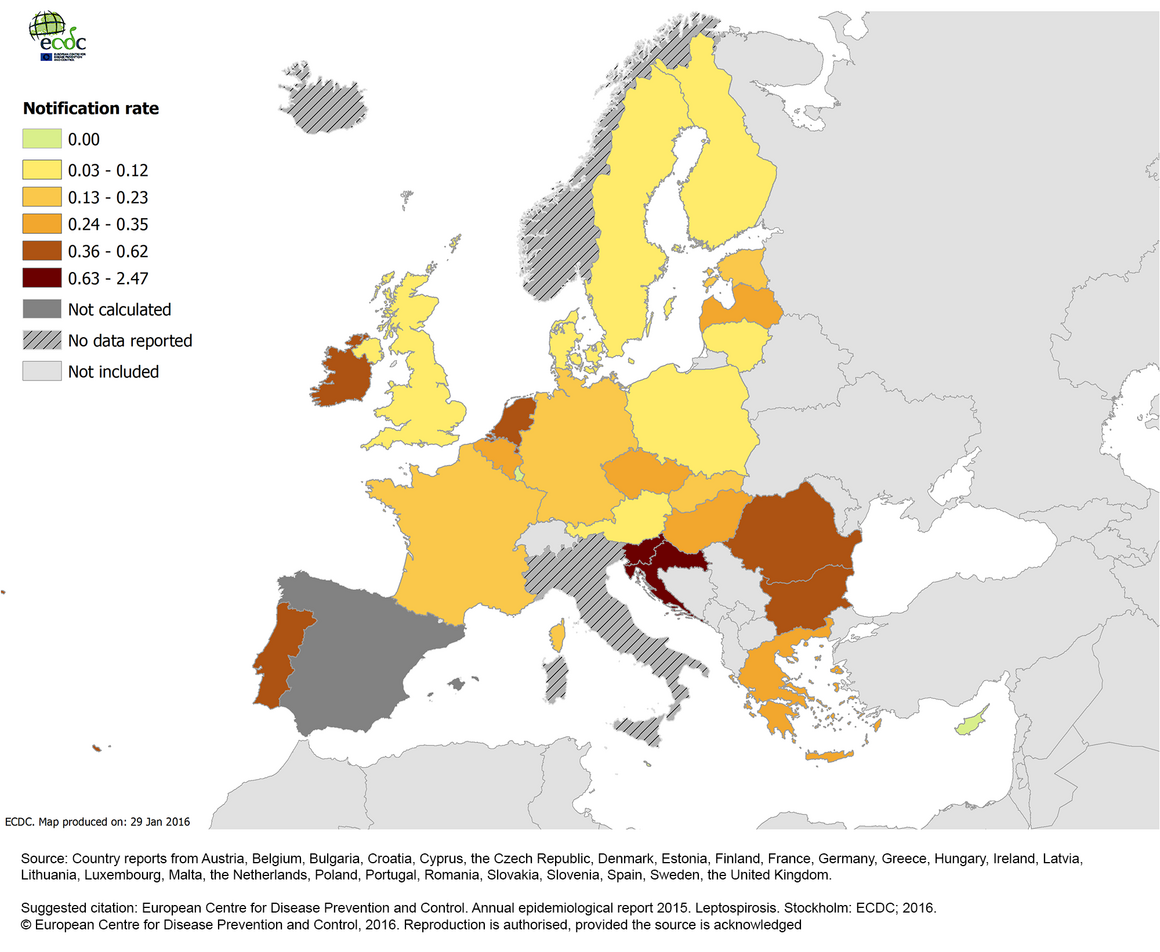 Figure 2. Reported confirmed leptospirosis cases: rate per 100 000 population, EU/EEA, 2014