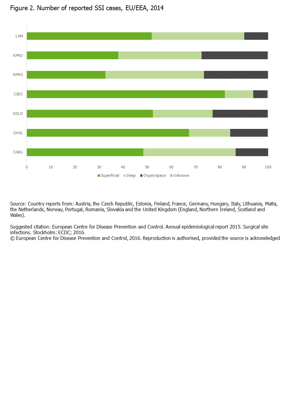 Figure 2. Types of SSI by surgical procedure type, EU/EEA, 2013–2014