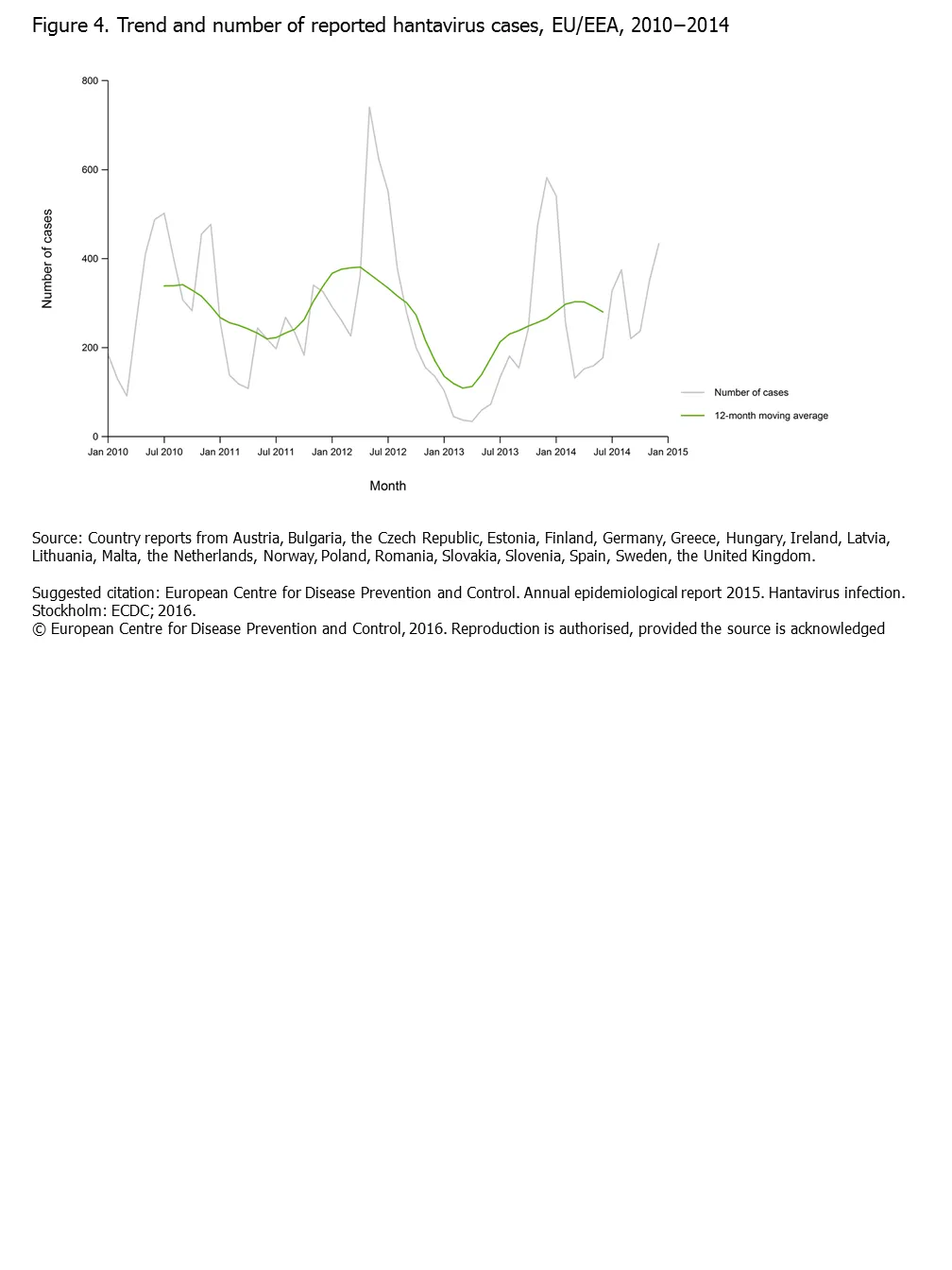 Figure 4: Trend and number of reported hantavirus infection cases, EU/EEA, 2010−2014