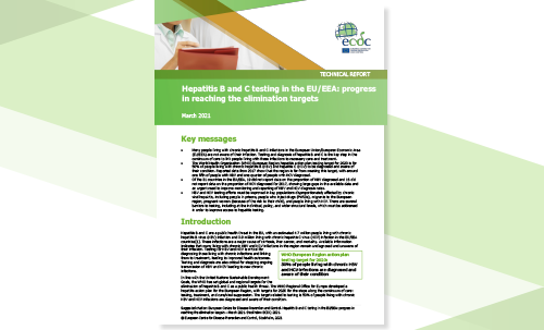 This brief will present a snapshot of hepatitis B and C testing in the European Union/European Economic Area (EU/EEA), discussing progress made towards the European action plan 2020 testing target, focussing on key populations and settings for testing, barriers to testing, and testing policies.