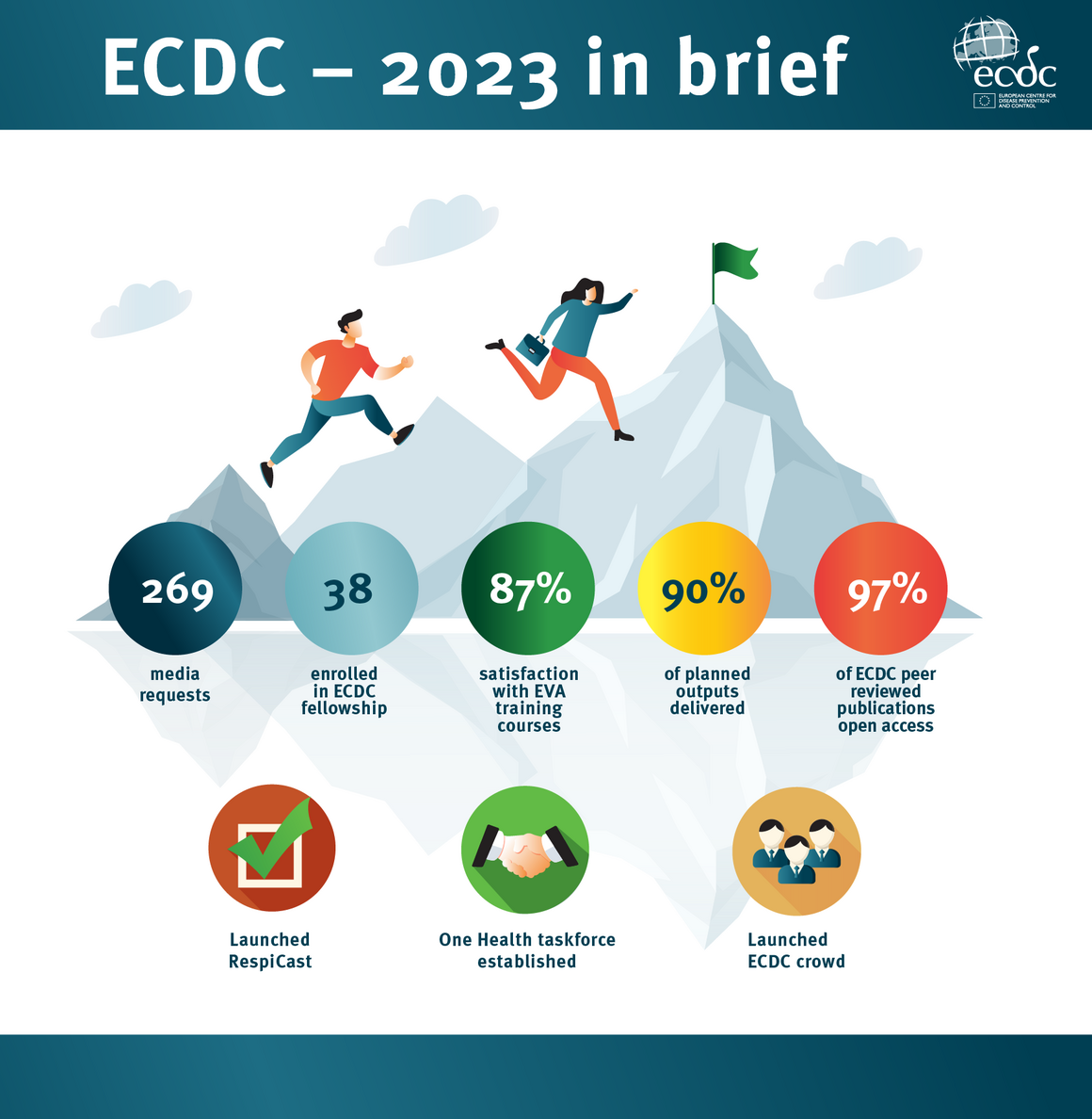 These highlights offer a selection of key activities from 2023 but by no means represents the entire range of ECDC’s accomplishments during that year. A detailed look at ECDC’s range of activities, its organisational and administrative structures, and its work plan can be found in the full version of the Annual Report.