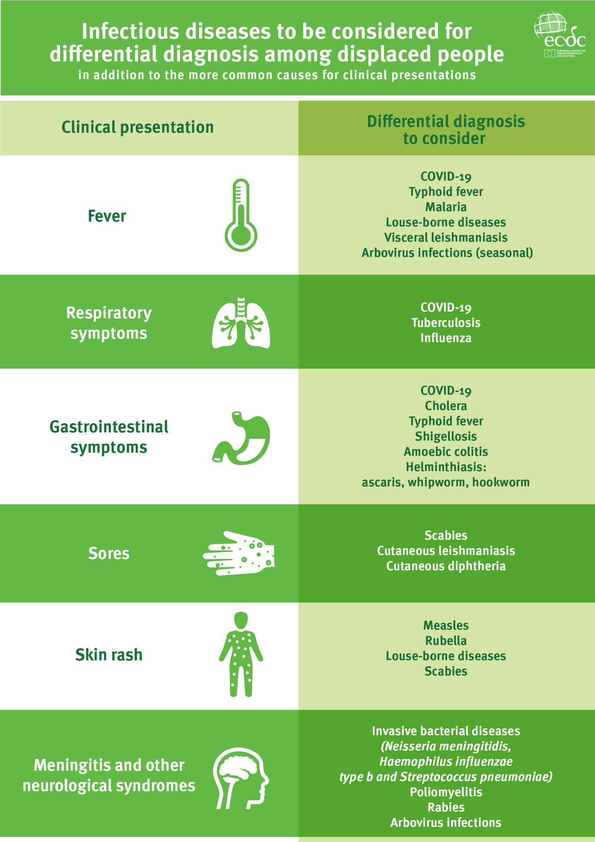 Infographic: Infectious diseases to be considered for differential diagnosis among displaced people
