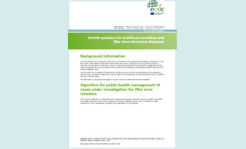 This document aims to present an algorithm for deciding whom to test and provide guidance on the laboratory tests for Zika virus infection diagnosis in order to support clinical diagnostic and case reporting through surveillance among EU Member States. The information is provisional and subject to revision when new information becomes available.
