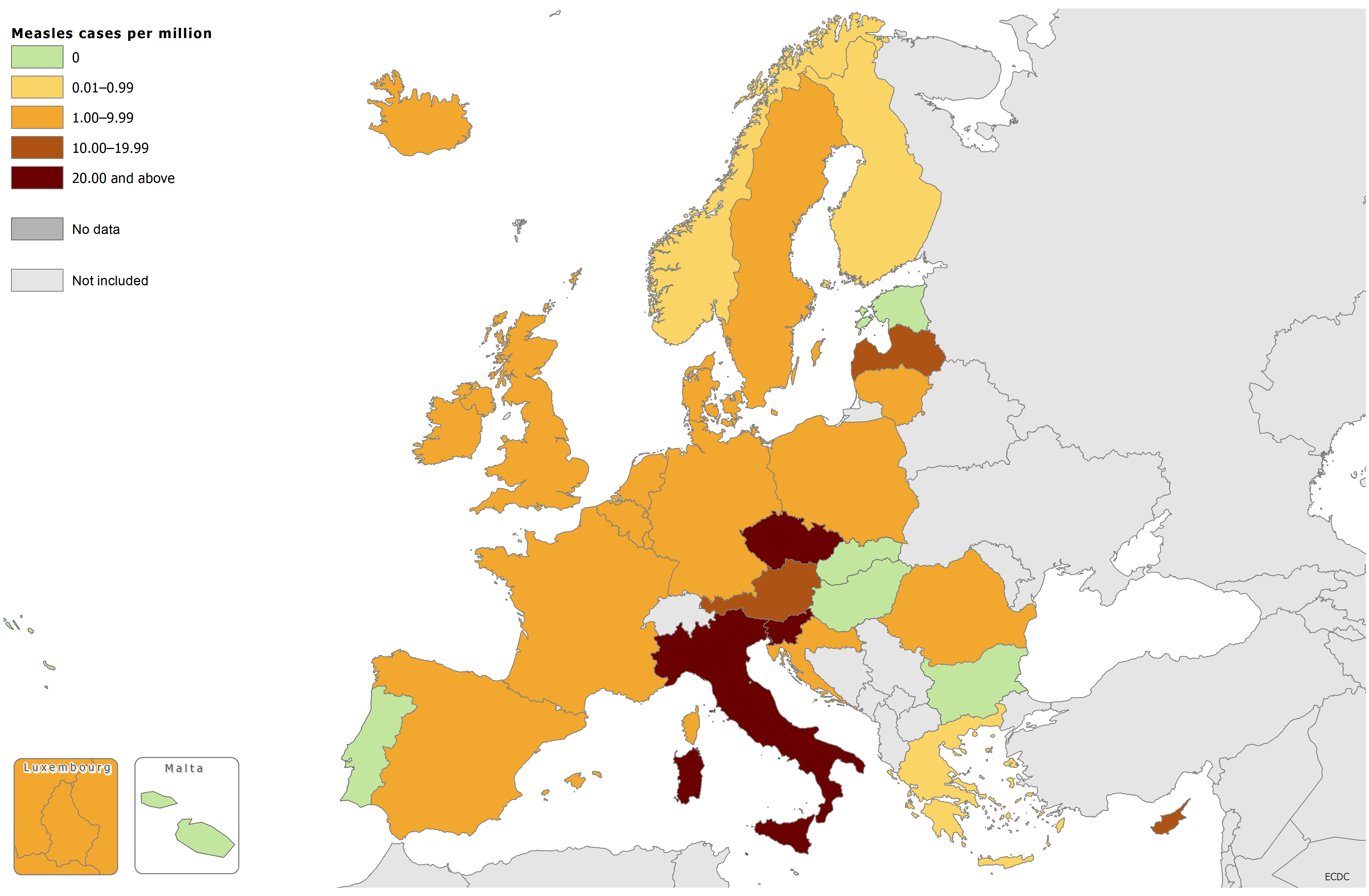 The measles maps are published monthly, together with the ECDC monthly epidemiological update.
