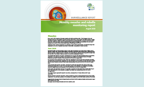 Every month, ECDC reports on European measles and rubella surveillance data. Thirty European Union and European Economic Area (EU/EEA) countries routinely submit data to The European Surveillance System (TESSy). This report is based on disease surveillance data reported for the period between 1 July 2017 and 30 June 2018.