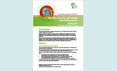 This monitoring report is based on measles and rubella data from The European Surveillance System (TESSy) for the period 1 August 2017 to 31 July 2018.