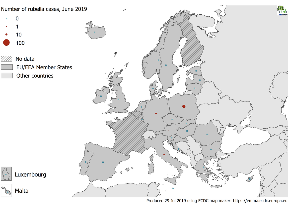 The monitoring report is based on measles and rubella data from The European Surveillance System (TESSy) for 1 July 2018–30 June 2019.