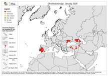 The map shows the current known distribution of Ornithodoros in Europe at ‘regional’ administrative level, as of January 2019. Since the previous version (May 2018), zero new reports were submitted and processed.