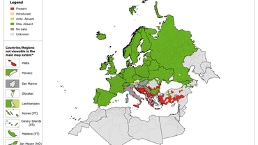 The map shows the current known distribution of Phlebotomus mascitii in Europe at ‘regional’ administrative level (NUTS3), as of May 2018. The VectorNet maps are published regularly on the website to provide the ECDC stakeholders and the general public with the most up-to-date information on vector distribution.