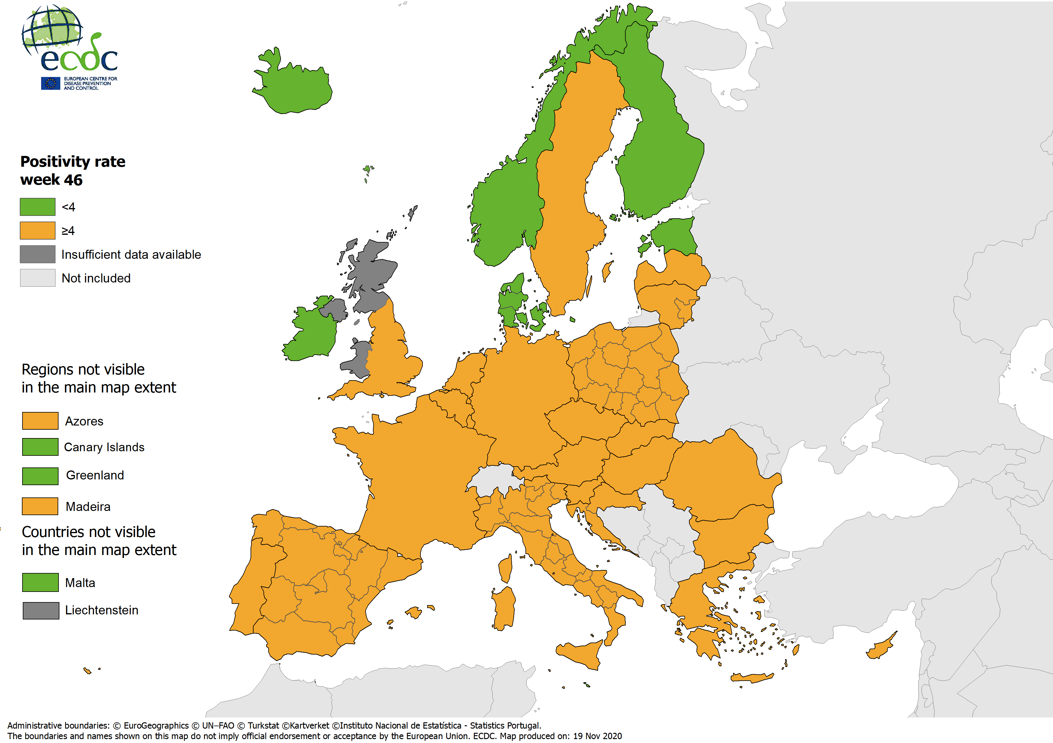 Positivity rates, updated 19 November 2020, week 46 Map 19 November 2020 Positivity rates, updated 19 November 2020 English (291.08 KB - PNG) Download