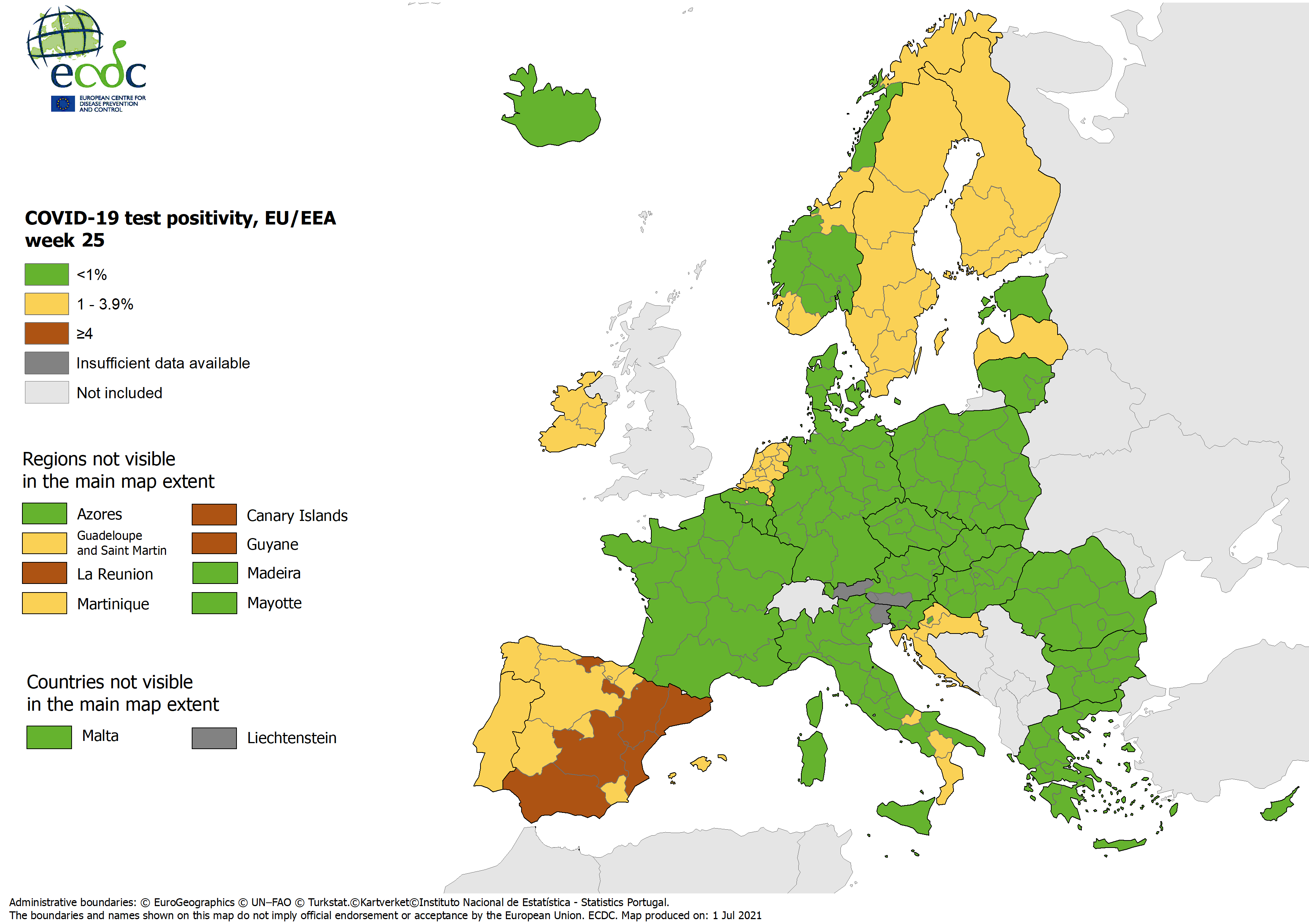 Positivity rates, updated 2 July 2021, week 25 Map 2 July 2021 Positivity rates, updated 2 July 2021 English (333.85 KB - PNG) Download