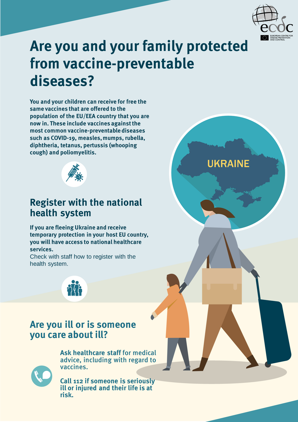 Poster on vaccination for Ukrainian refugees.