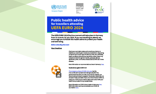 ECDC, WHO and the German Federal Centre for Health Education (BZgA) have jointly developed public health advice for UEFA EURO 2024 to promote the safety and well-being of spectators attending matches.