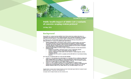 As a result, ECDC will conduct a scoping review on SARS-CoV-2 VOCs, with the purpose of identifying relevant emerging data that could inform ECDC’s scientific guidance and risk assessments.