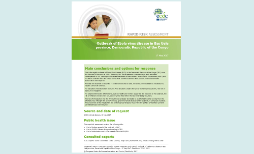 Rapid Risk Assessment: Outbreak of Ebola virus disease in Bas Uele province, Democratic Republic of the Congo; 8th update, 19 May 2017