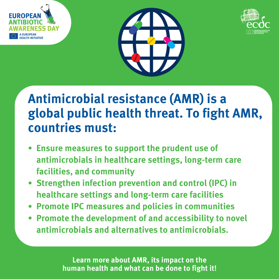 Editable social media card on the actions necessary to fight antimicrobial resistance.