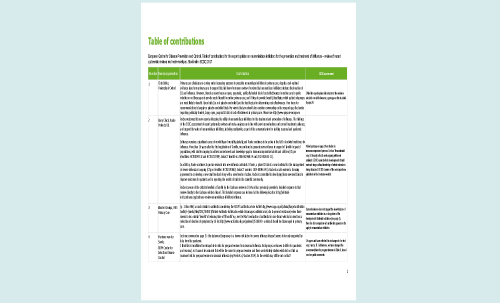 The 'Table of contributions' contains all comments received through a public consultation on this topic and lists ECDC’s responses to those comments.