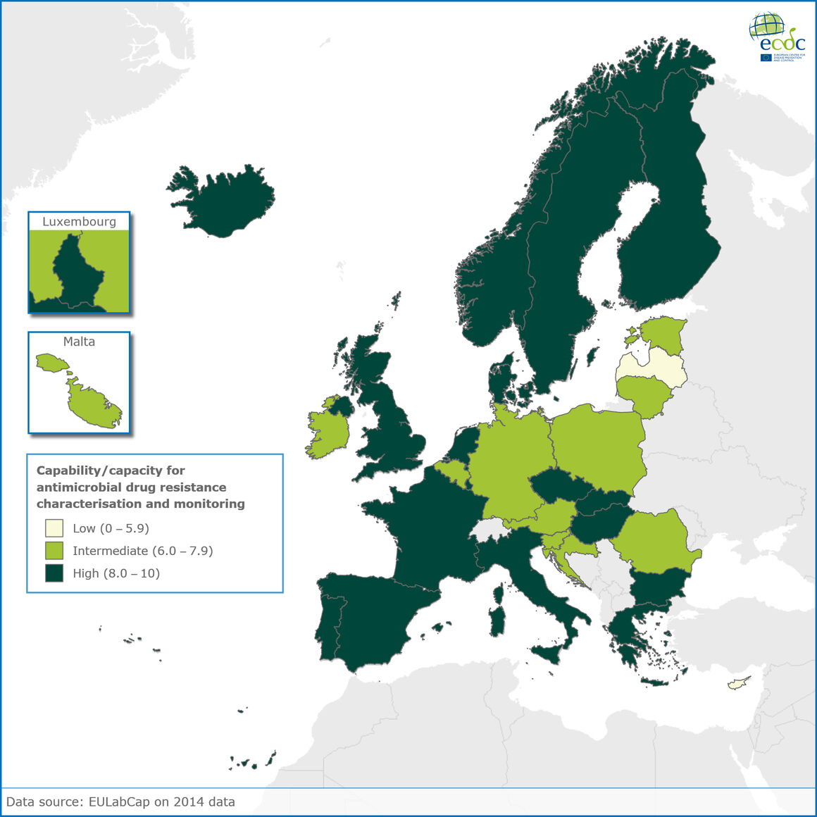This second EULabCap report, on 2014 data presents the indicator results for EU and EEA (European Economic Area) countries, aims to help policymakers identify possible areas for action and to evaluate the impact of capacity strengthening activities and health system reforms.